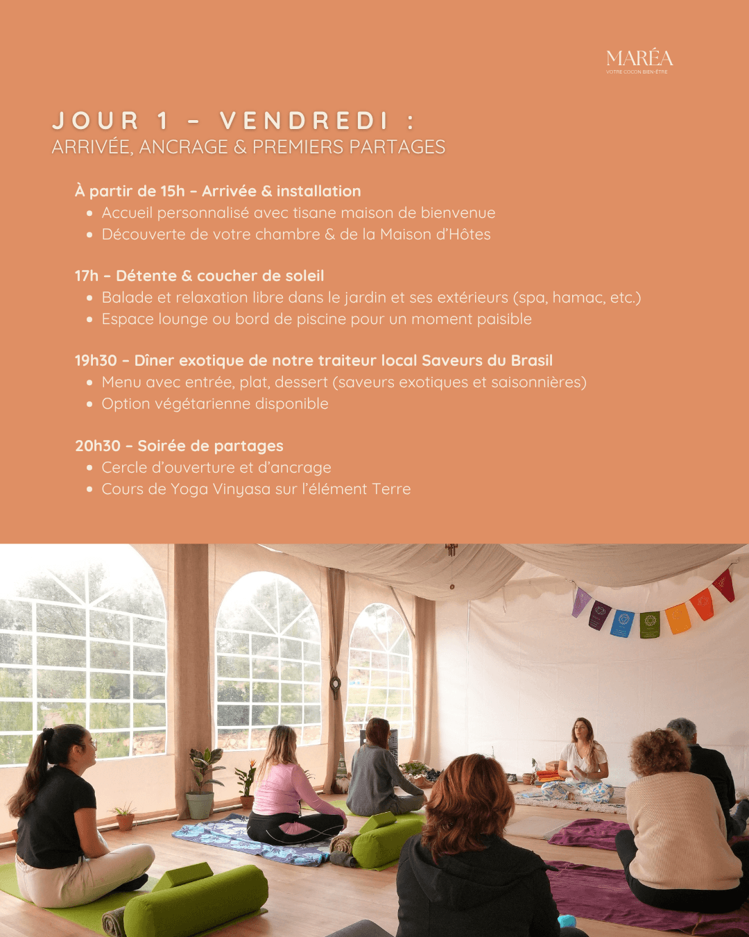 Les retraites Maréa sont des parenthèses plus longues, pensées comme des immersions profondes pour ralentir, respirer et revenir à soi.